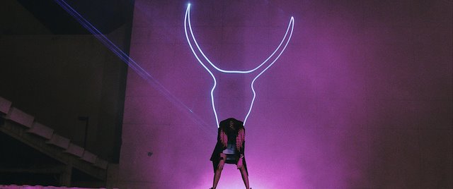 The visual pairs attention-grabbing visual effects with purple neon hues and the powerful choreography.