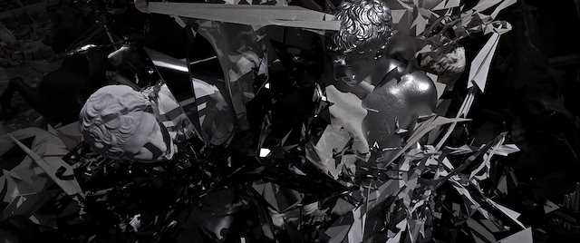 The visual dissects socio-political climate through symbols and sculptural forms, filtering everyday experiences and global issues into dramatic painting-like scenes.
