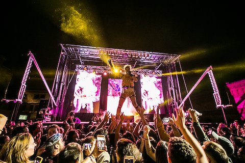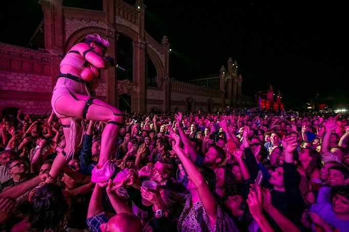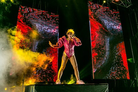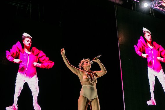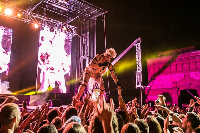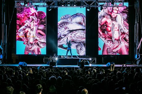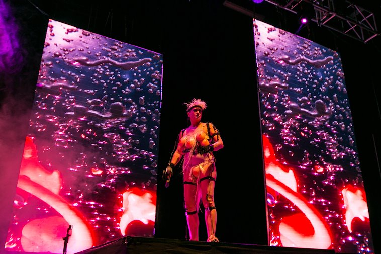 Artist are exploring new modes of live performance, where body and technology meet. By using motion capture, the movement is translated live from physical world into virtual. Peaches performance drives the digital avatars in real-time, resulting in a wild interactive experience.